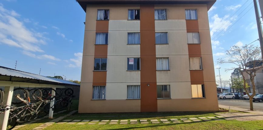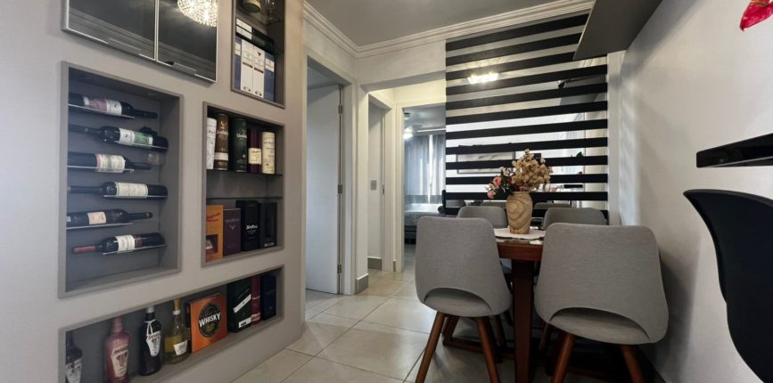 Apartamento com 42m² contendo: 02 quartos, sala de jantar, banheiro e cozinha.